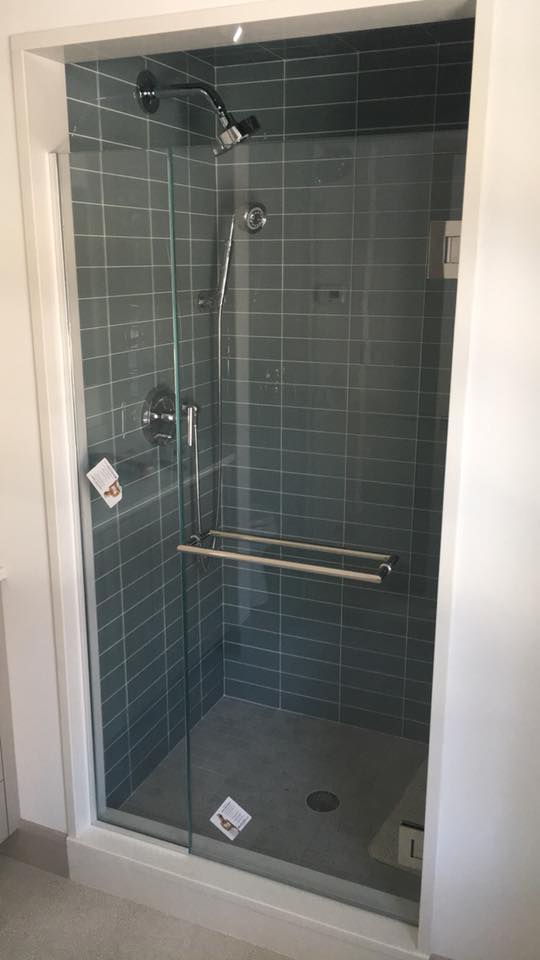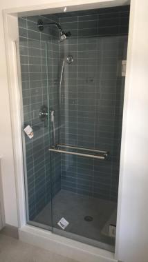 Door with side-mount hinges and a fixed panel held in place with polished chrome channel (glass: 1/2″ Starphire®️ glass with Showerguard®️ coating) Published January 23, 2018 at 540 × 960 Door with side-mount hinges and a fixed panel held in place with polished chrome channel (glass: 1/2″ Starphire®️ glass with Showerguard®️ coating)