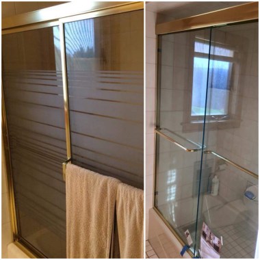 showerdoor Published January 23, 2018 at 2400 × 2400 Before & after – after removing the framed slider with obscure glass and replacing it with a semi-frameless unit with clear glass, this bathroom instantly feels more modern.
