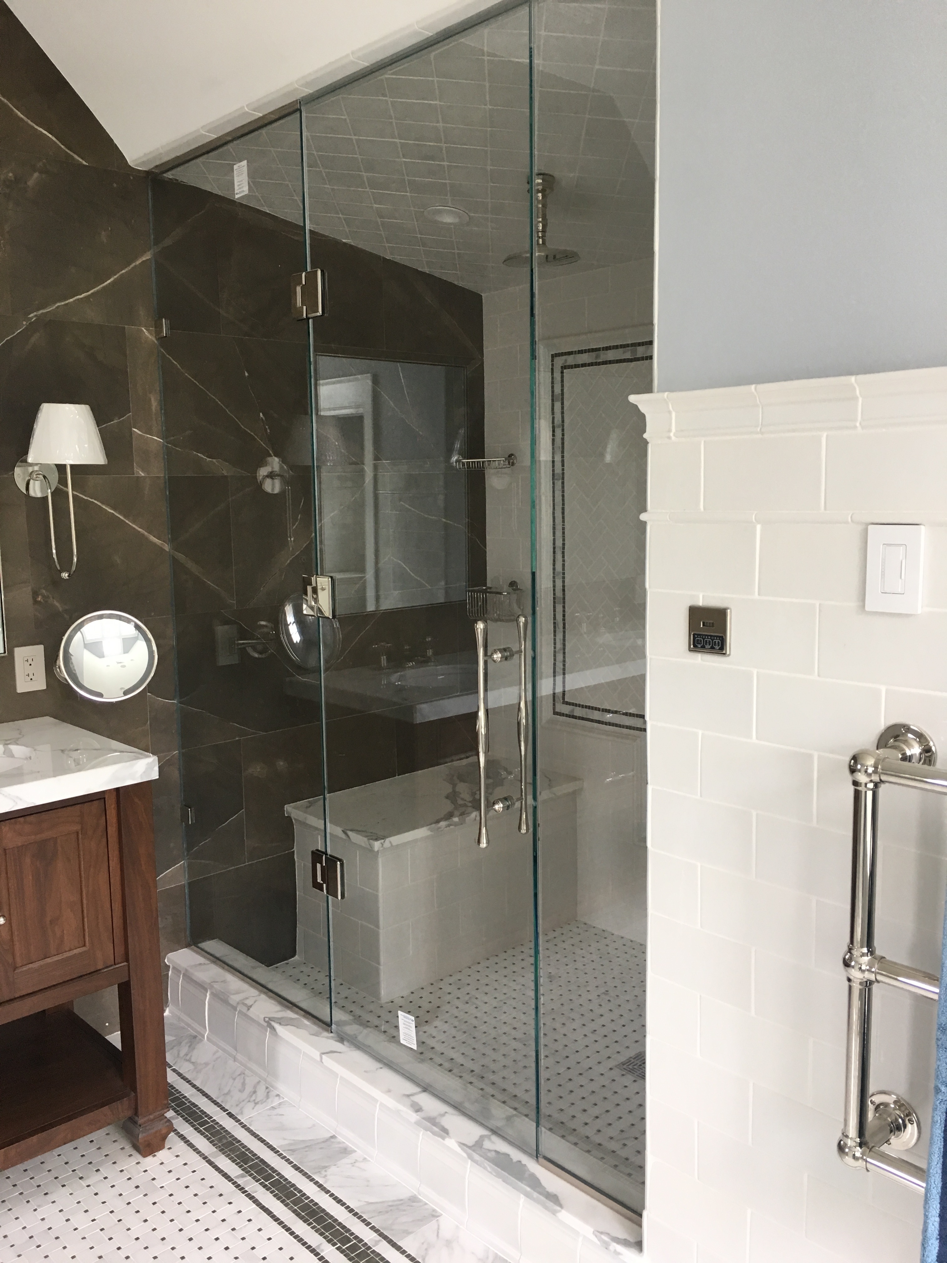 masterbath Published January 23, 2018 at 3024 × 4032 Panel-door-panel steam shower enclosure with 1/2″ low-iron/ “ultrawhite” glass with Showerguard coating.