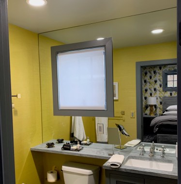 The client requested that this wall be covered with a single mirror (no seams) – after some careful measurements and calculations (the walls were slightly out-of-square), we were able to fulfill her request and install this mirror with a large cutout for the window (as well as a smaller cutout for the outlet).