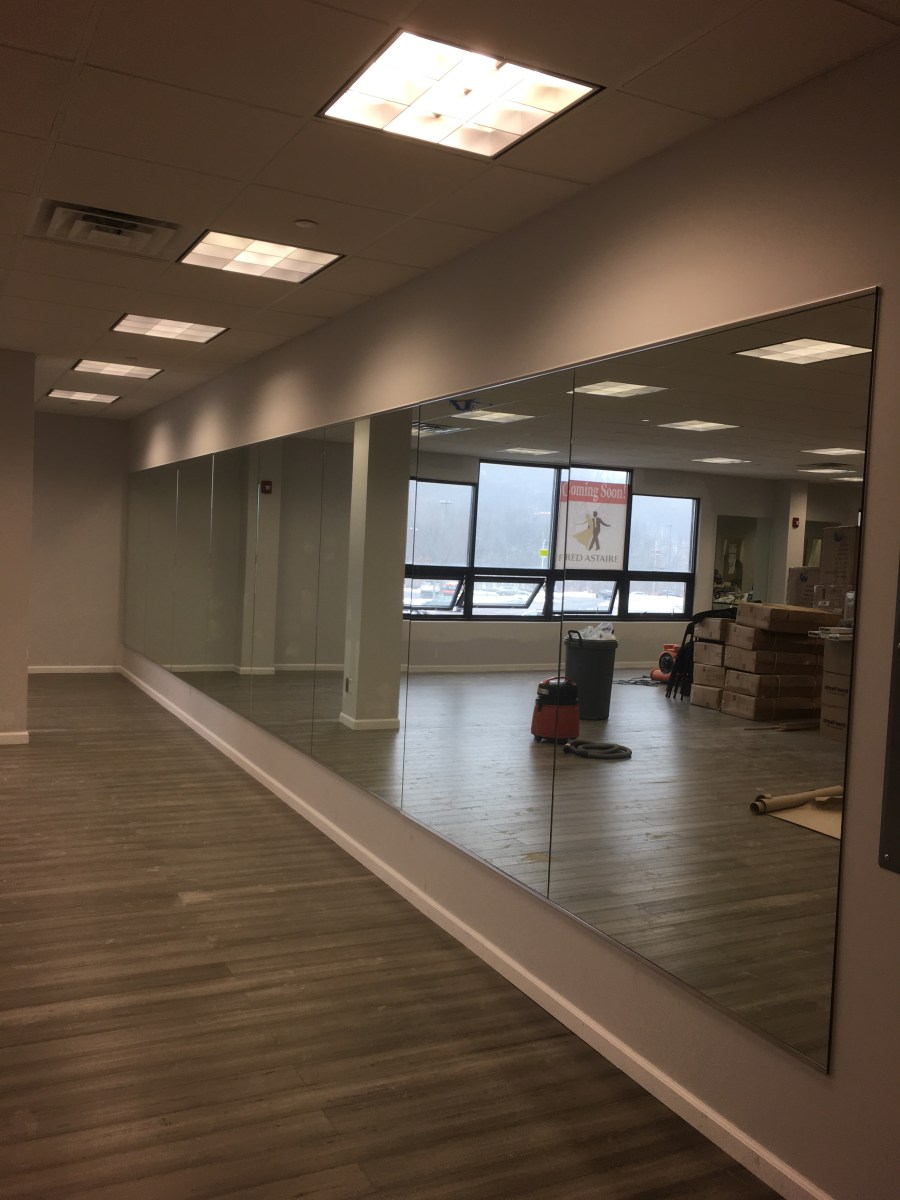 mirror wall Previous Next Published March 12, 2019 at 3024 × 4032 in Mirrors, Tabletops, & More 1/4″ mirrors with polished edges installed along the wall of a dance studio, using “J” channel on the top and bottom. Like Loading...