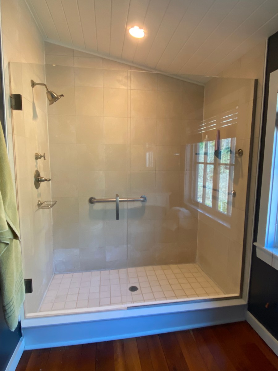 IMG-9917 Previous Next Published March 29, 2022 at 3024 × 4032 in Shower Enclosures A frameless door & panel with wall-mount hinges and wall channel. Like Loading...